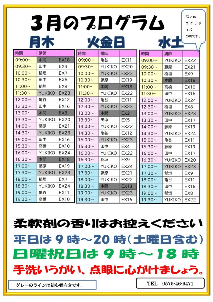 3/1~3/31までのプログラムです。