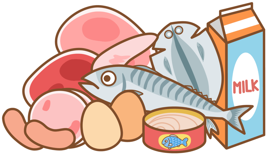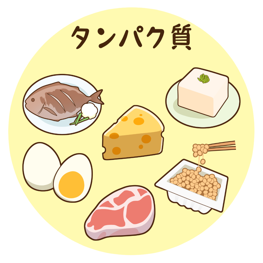 肉・魚・卵・大豆製品など、たんぱく質を意識した食事を心がけましょう。
